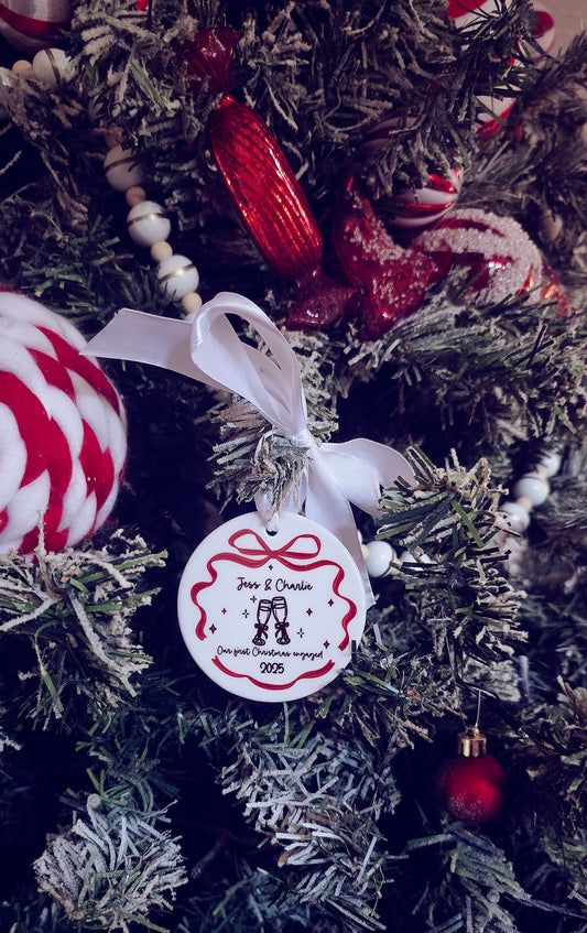 Engaged Hanging Bow Decoration Christmas Bauble