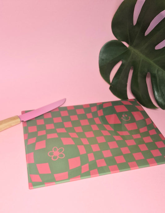 Pink & Green Funky Checkered Chopping Board