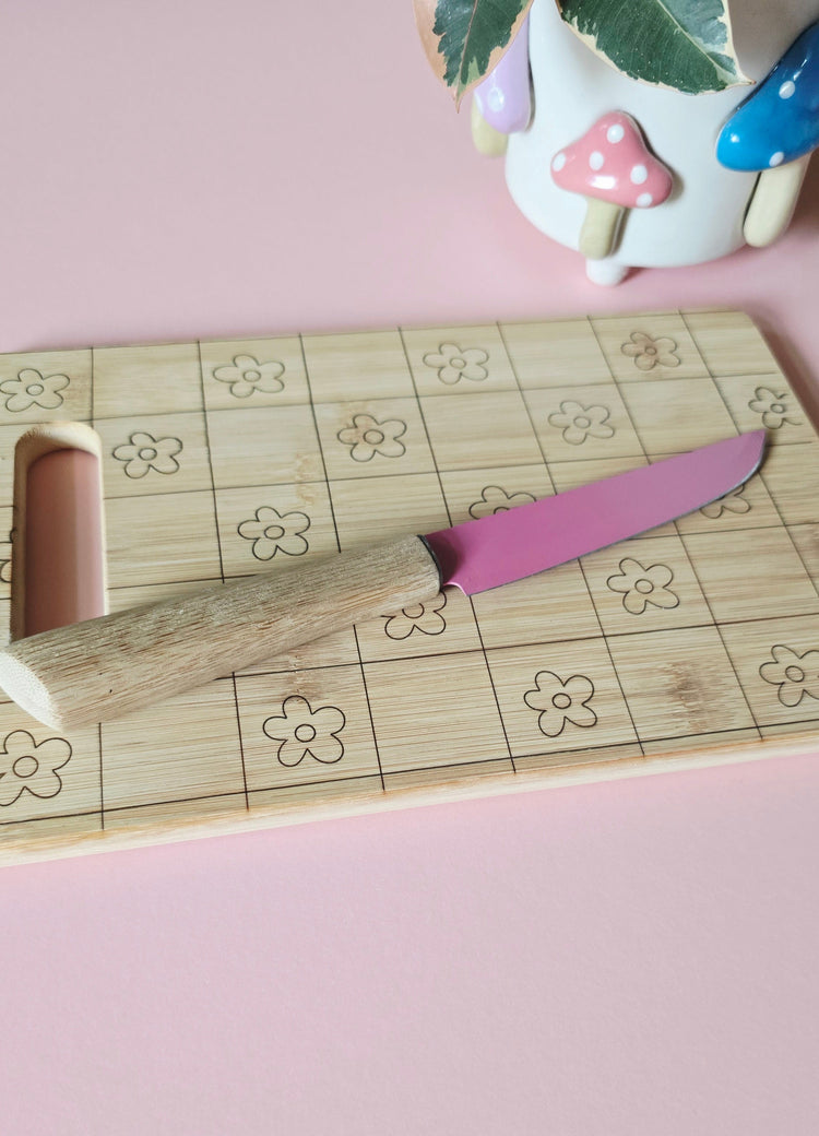 Cute Check Flowers Organic Bamboo Chopping Board