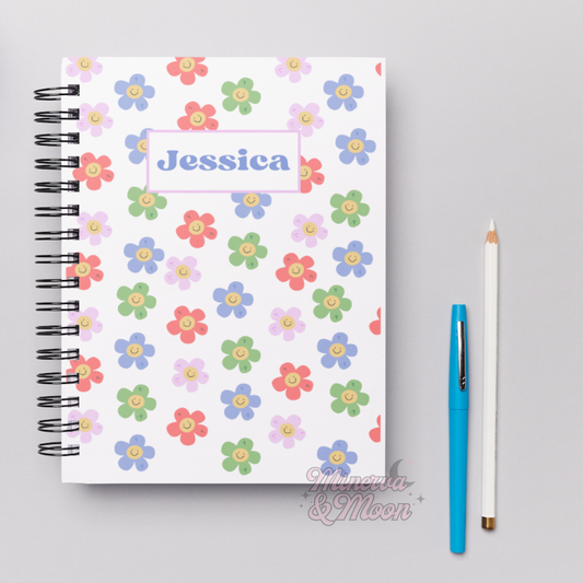 Orange Checkered Flowers | Cute Personalised Notebooks