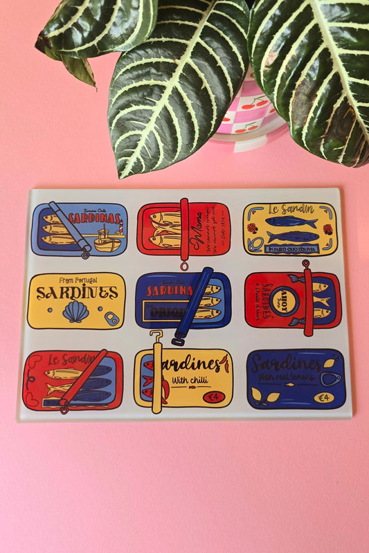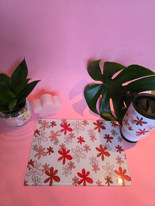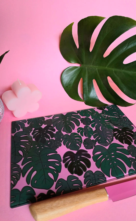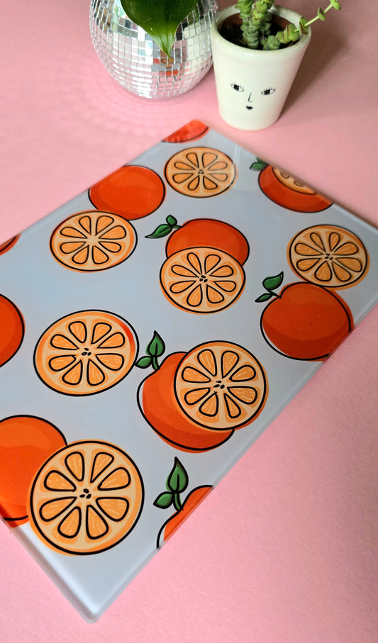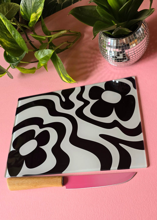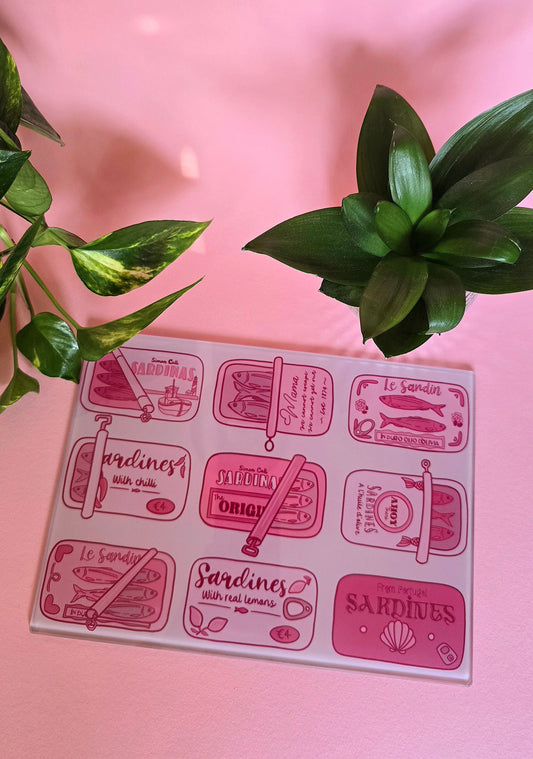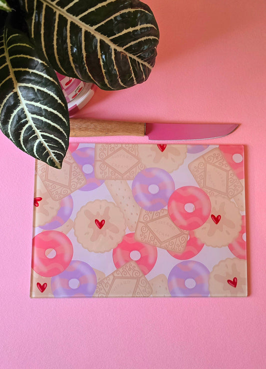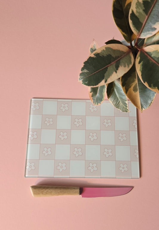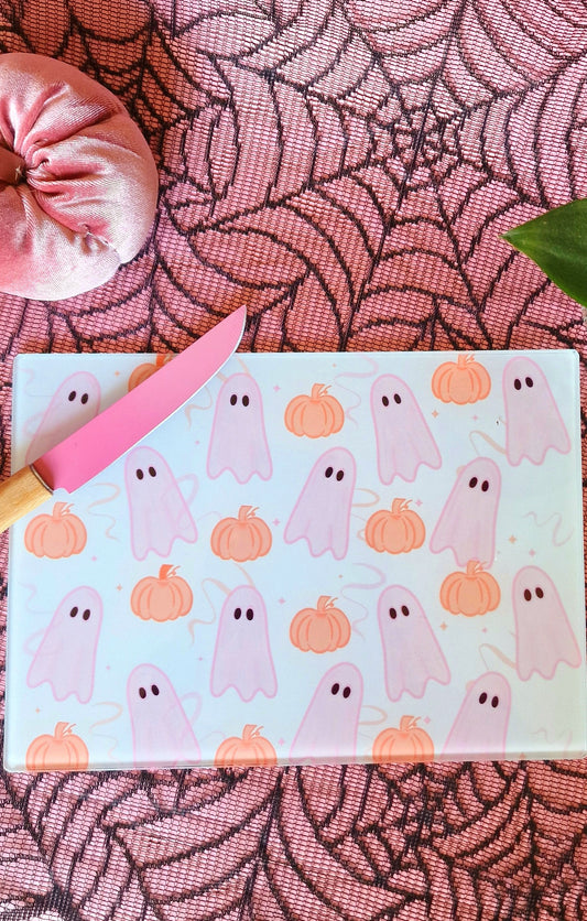 Pink Ghosties & Pumpkin Glass Chopping Board