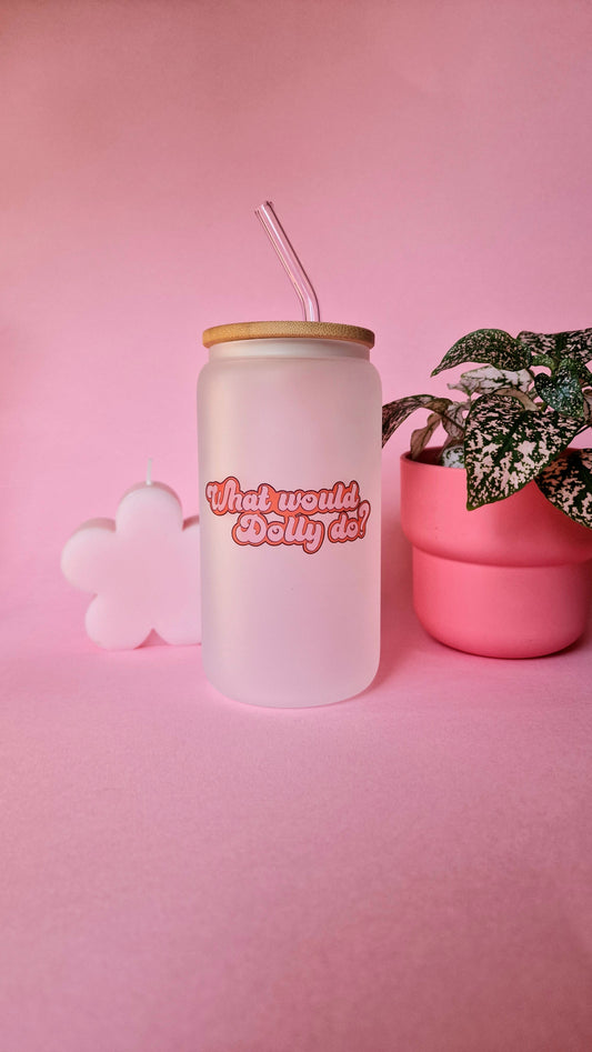 What Would Dolly Do Glass Tumbler With Bamboo Lid and Straw