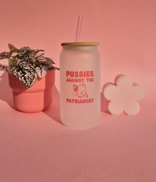 Pussies Against The Patriarchy Glass Tumbler Bamboo Lid & Straw