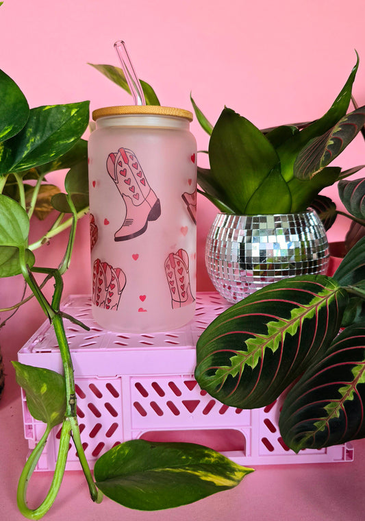 Cowboy Boots | Western Love Valentines 16oz Glass Tumbler