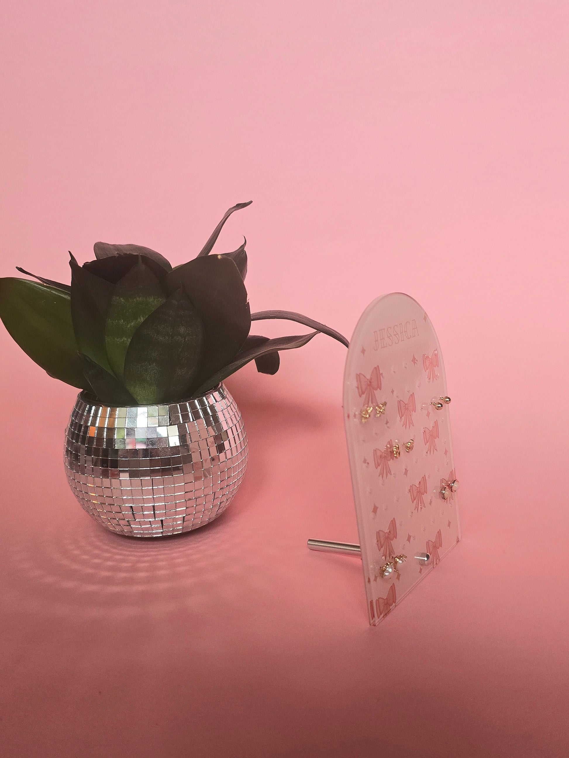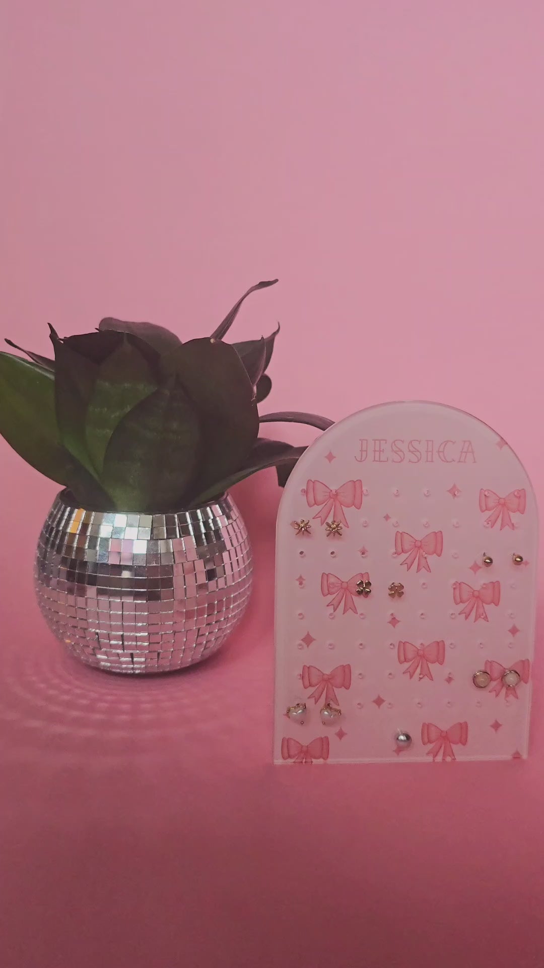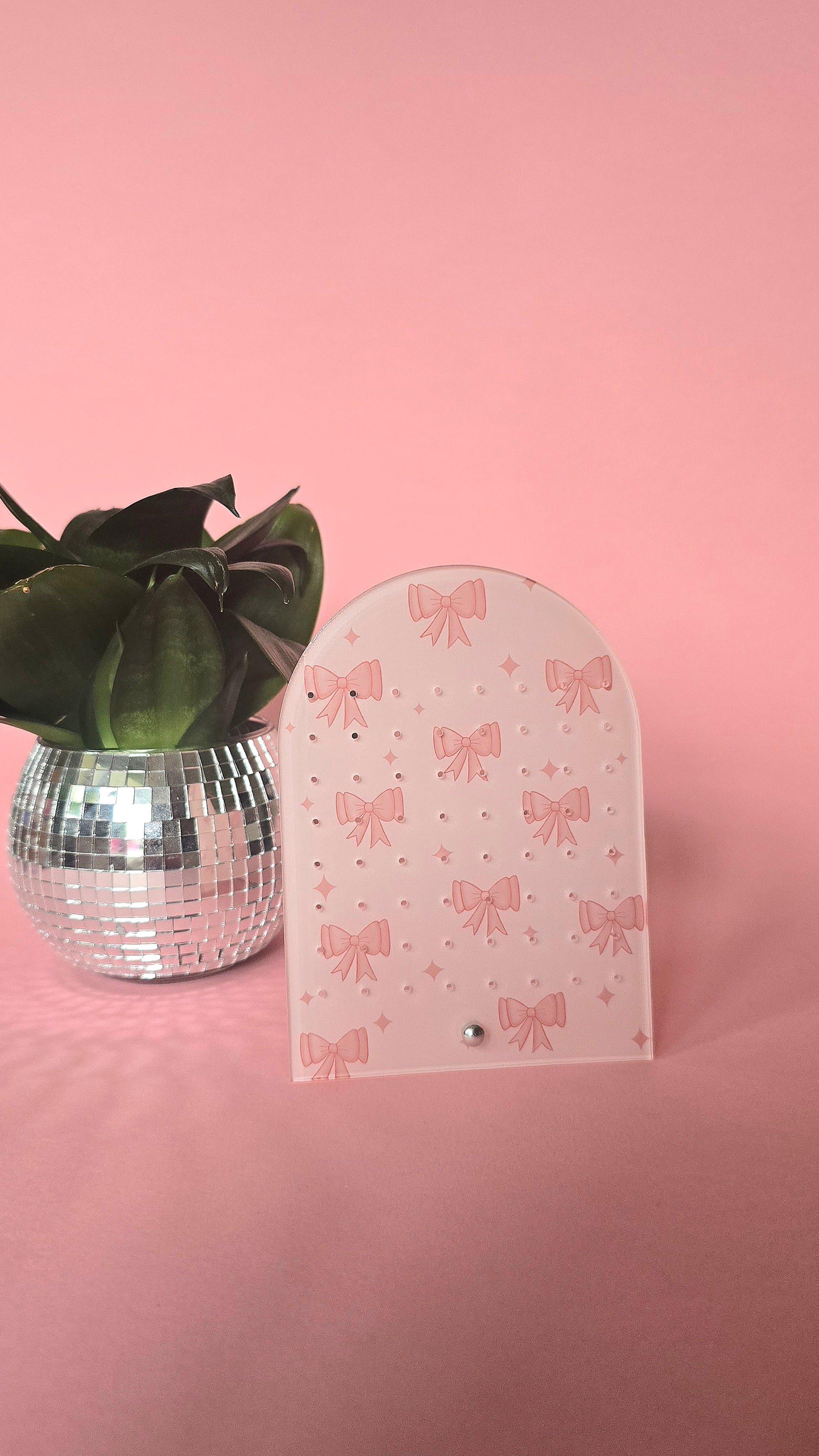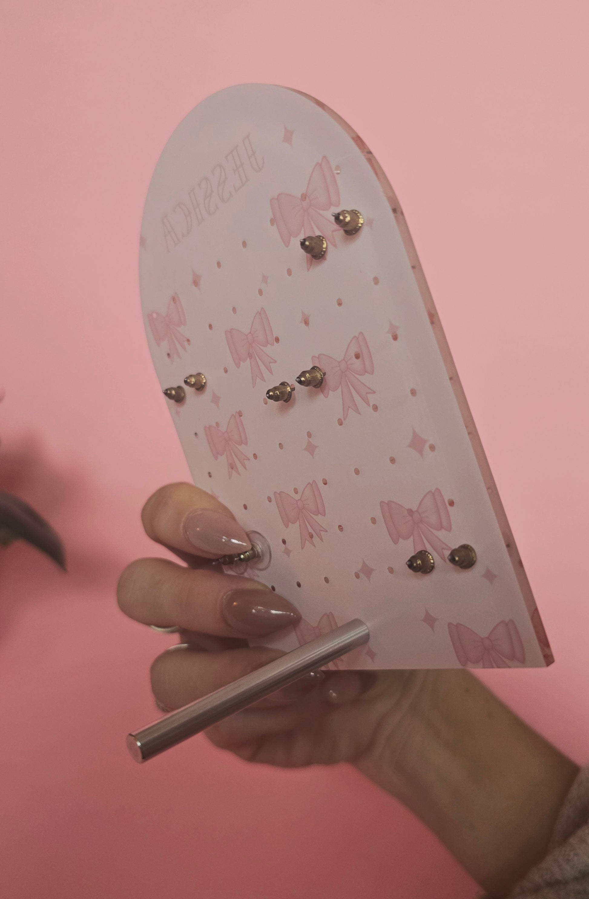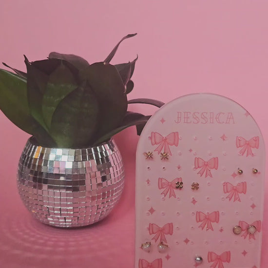 Personalised Earring Display Stand | Pink Bows | Holds 32 Pairs of Earrings | Stud Earring Jewelery Holder
