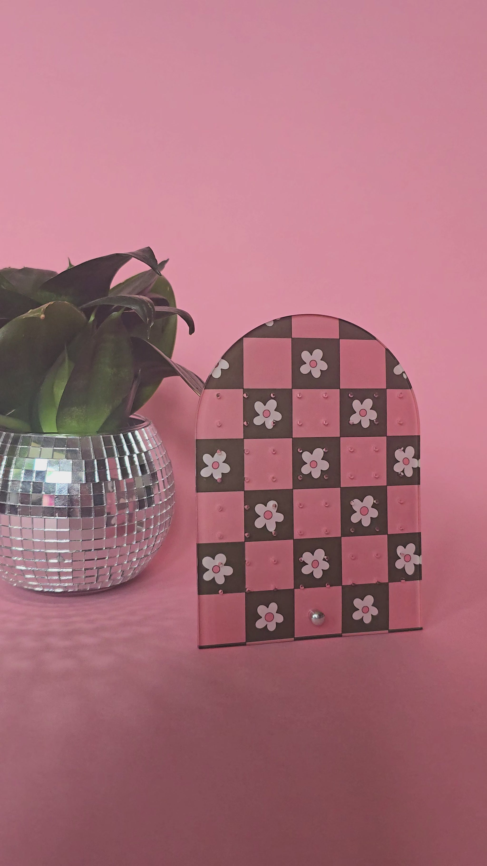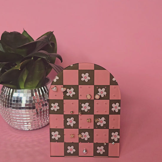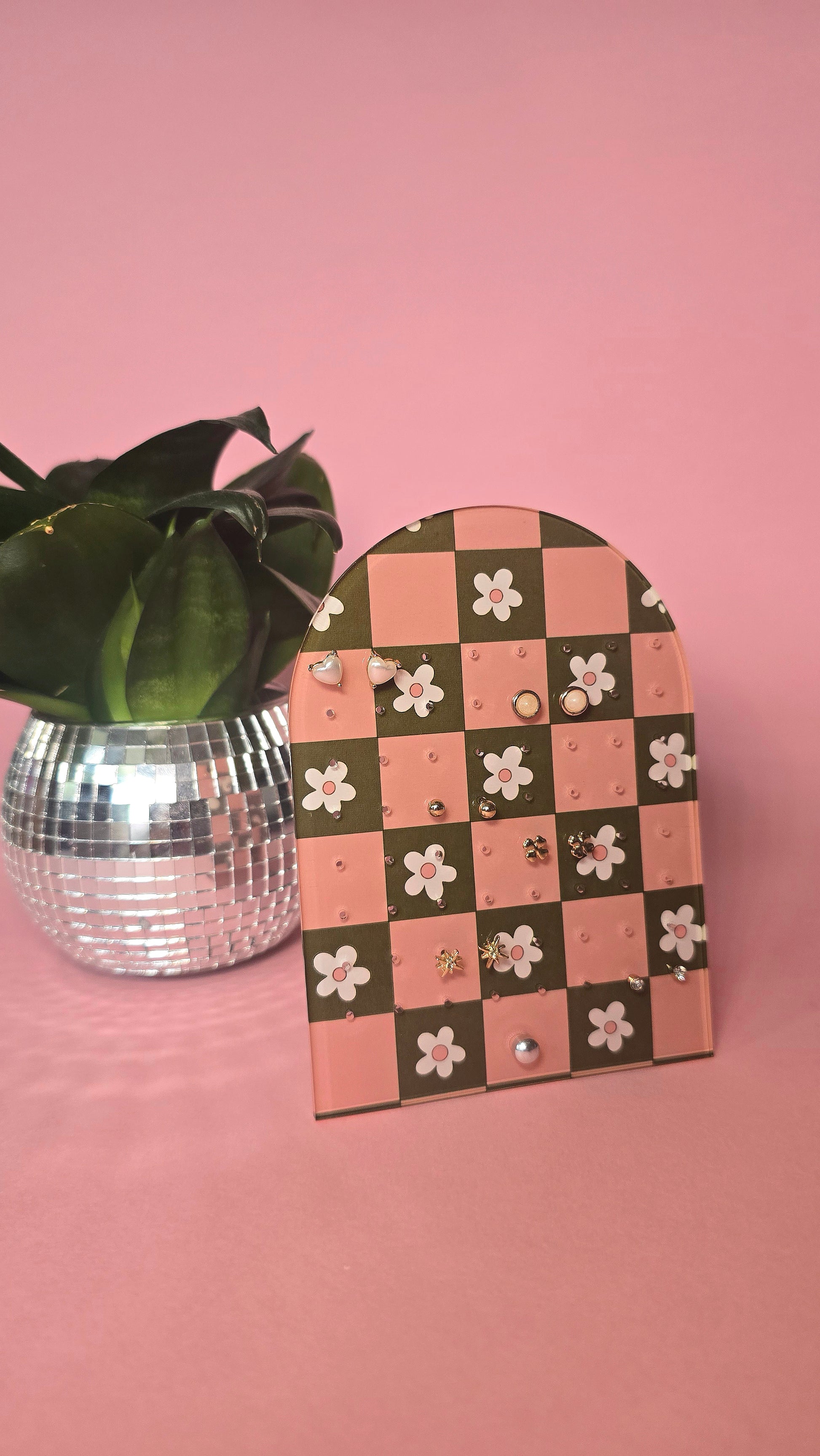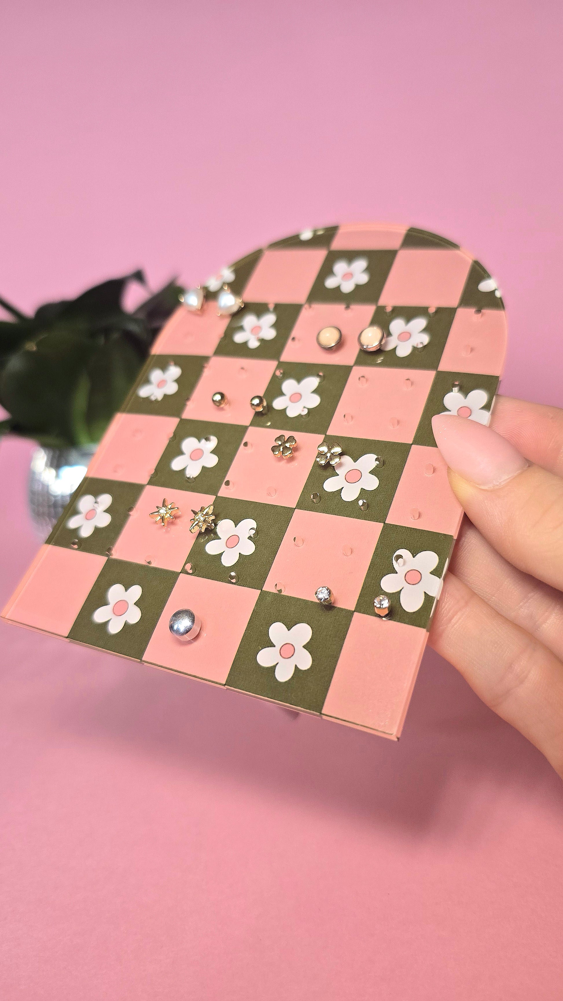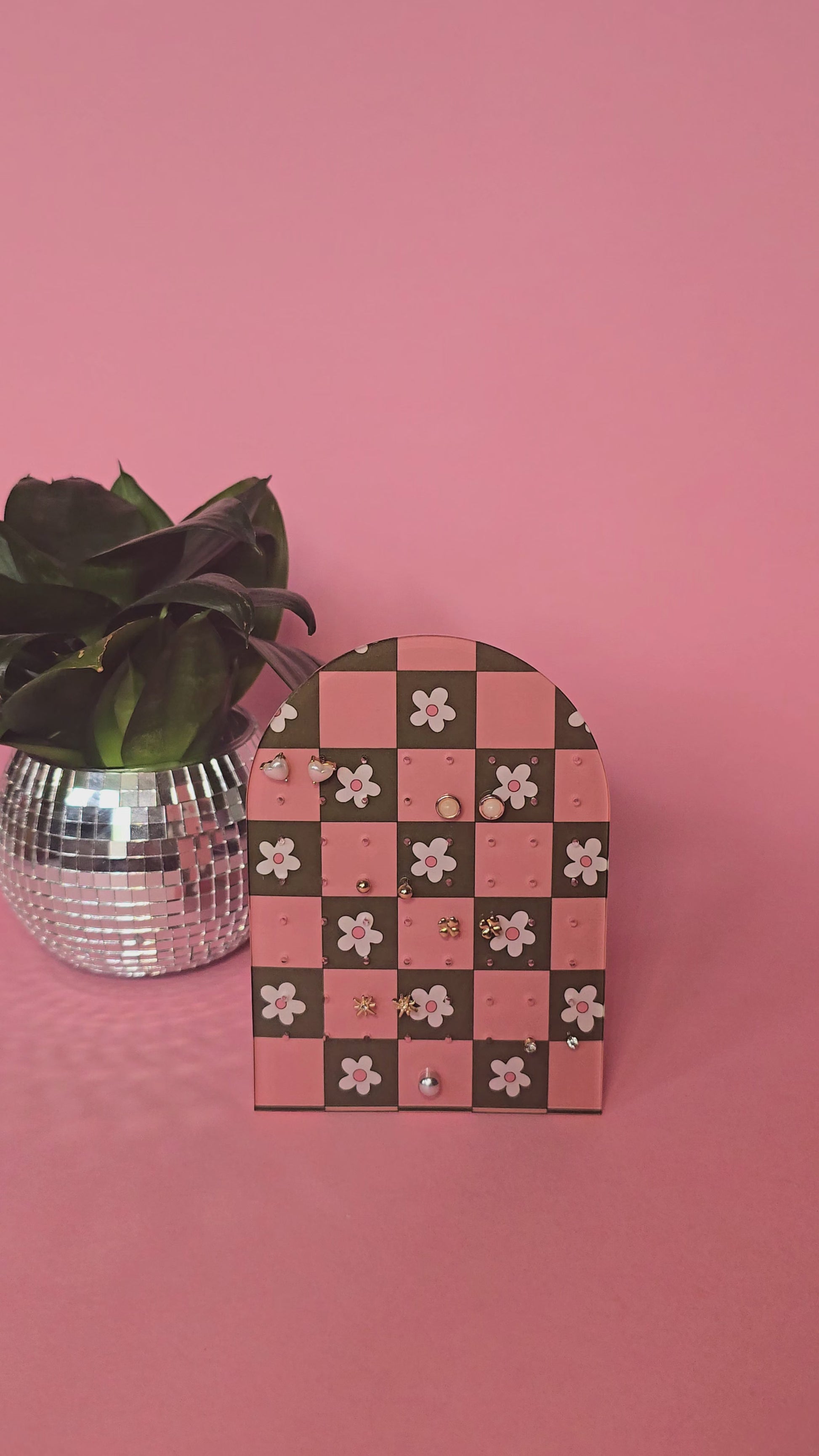 Earring Display Stand | Pink & Green Flowers | Holds 32 Pairs of Earrings | Stud Earring Jewelery Holder