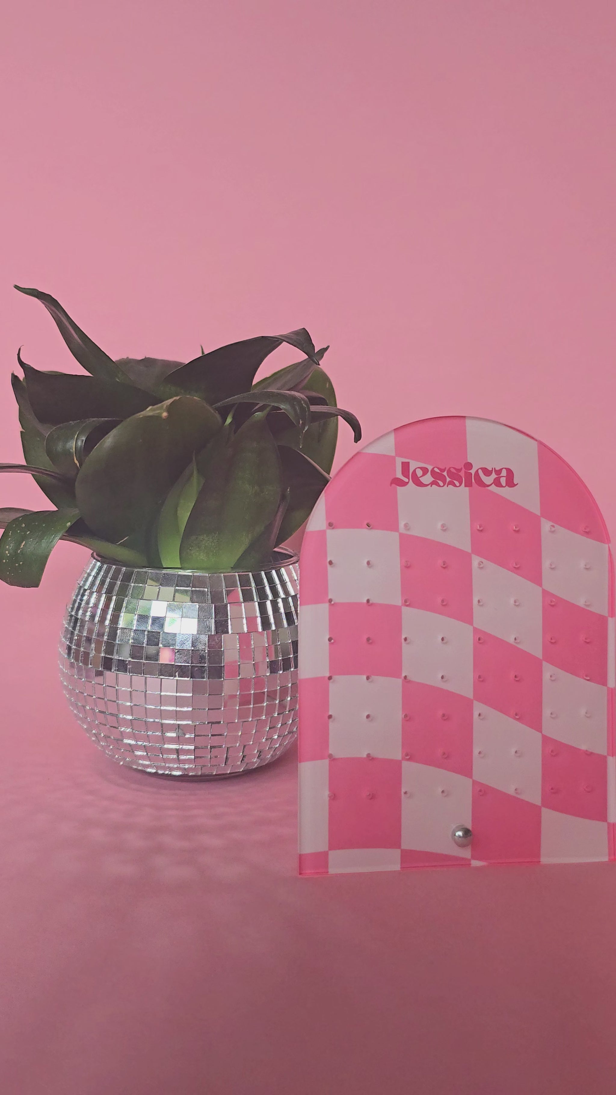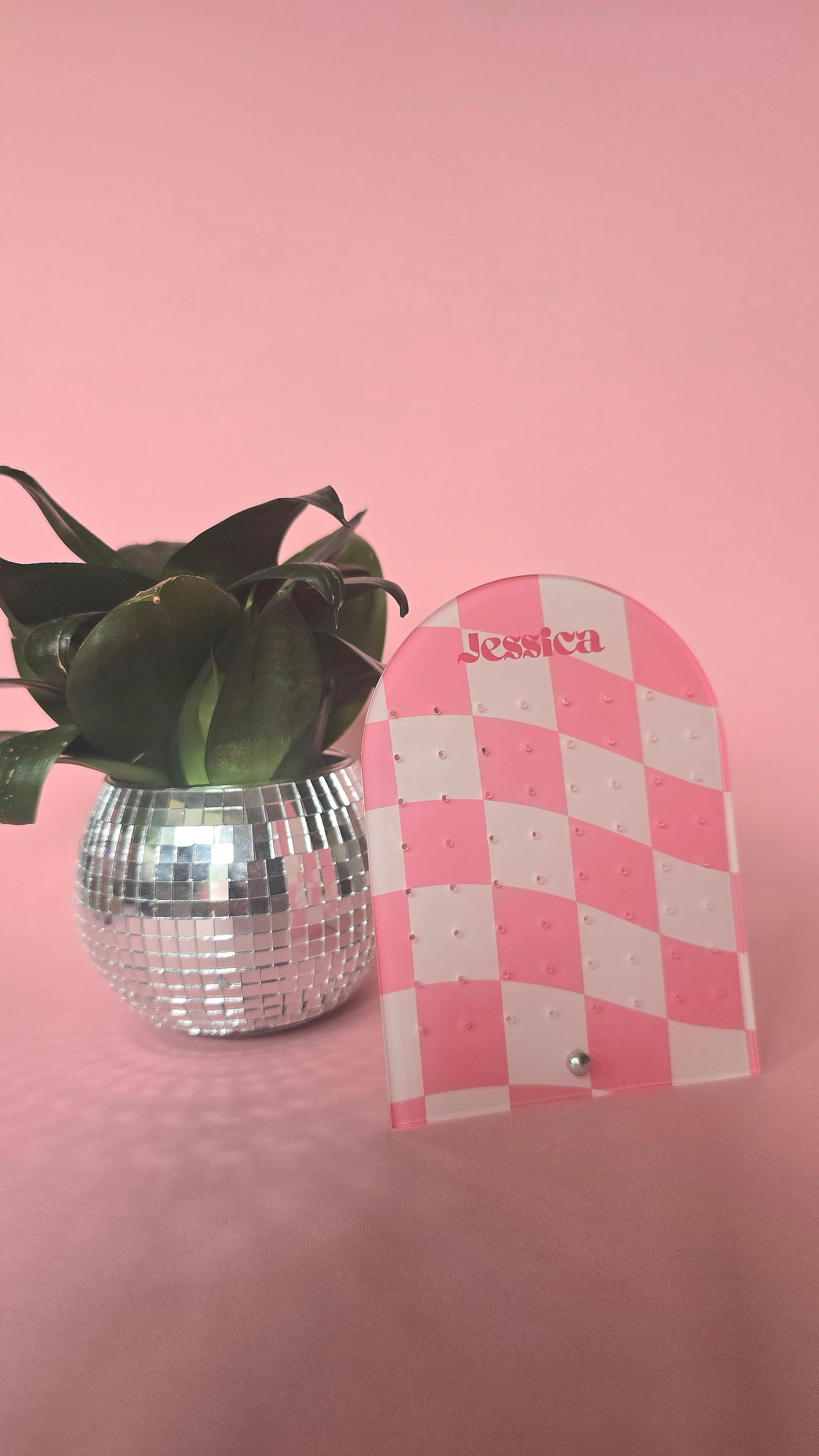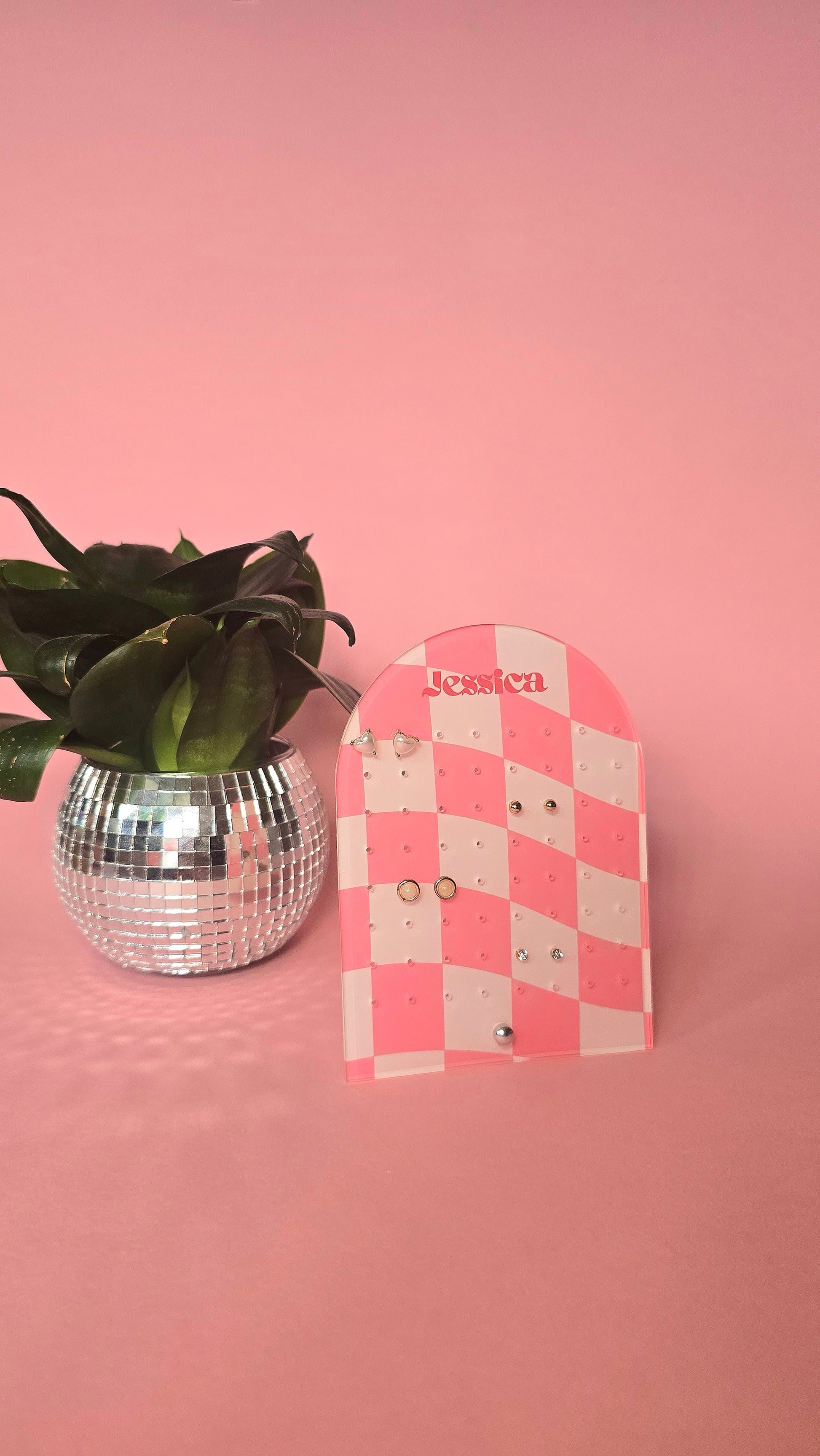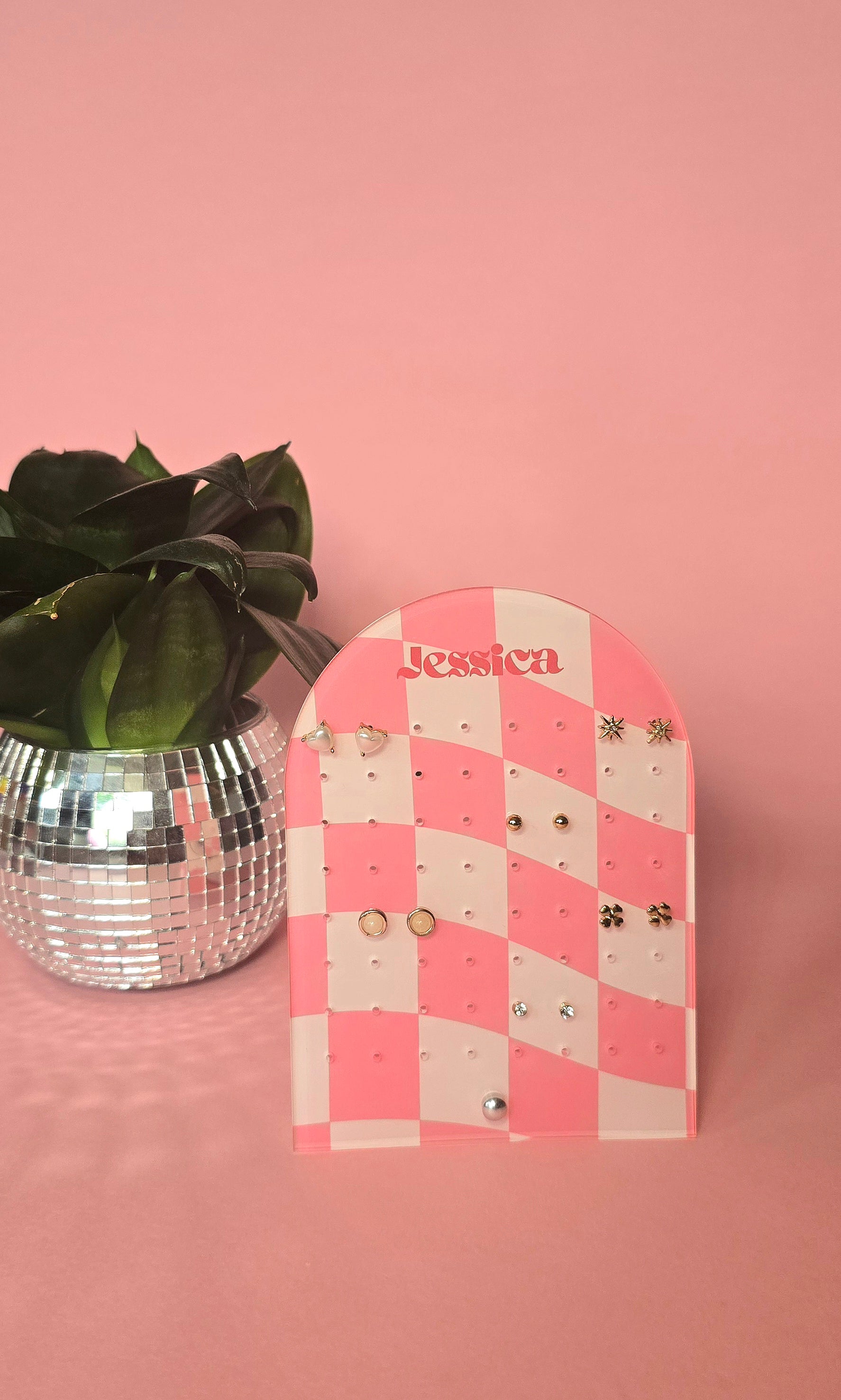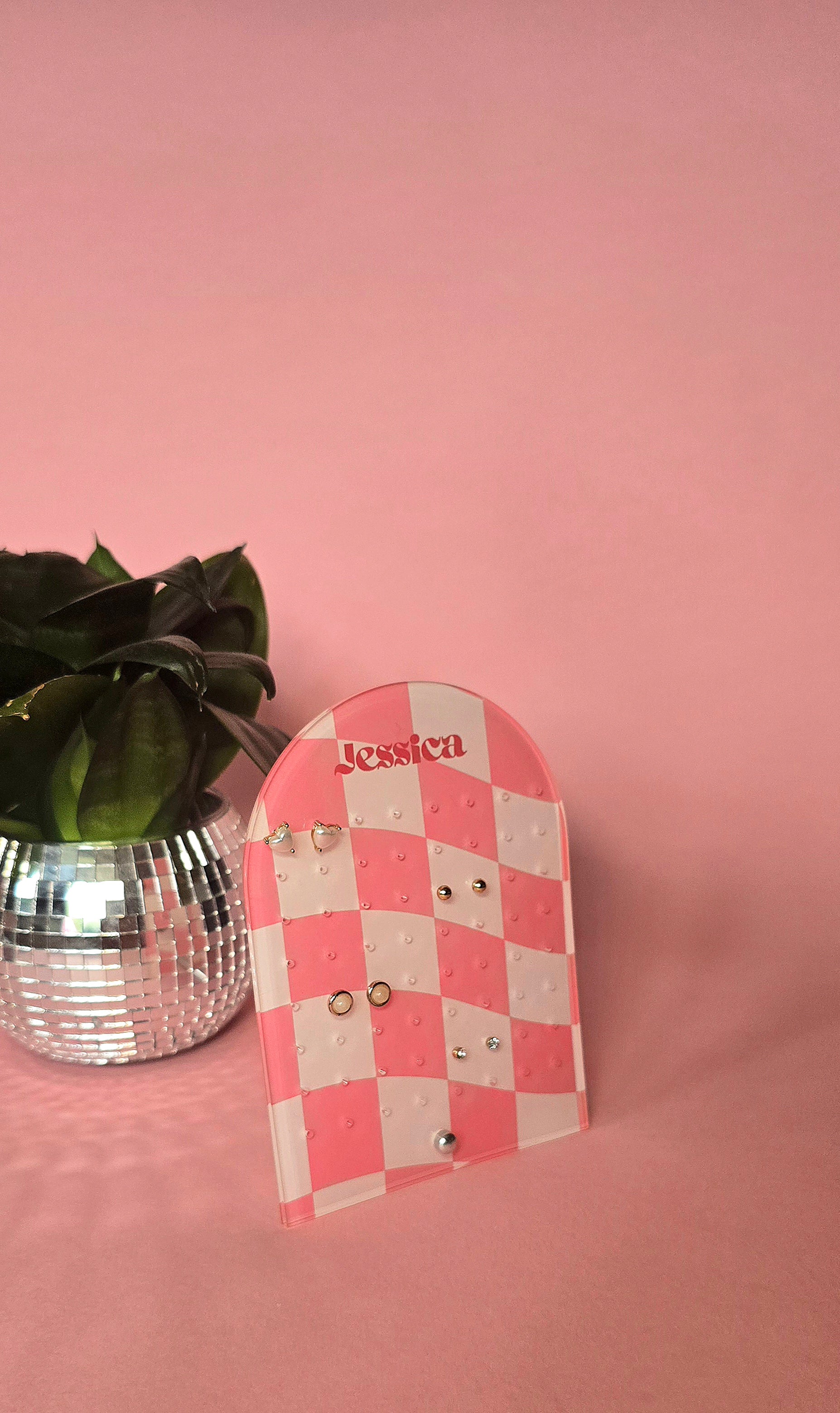 Earring Display Stand | Pink Check Personalised Stand | Holds 32 Pairs of Earrings | Stud Earring Jewelery Holder